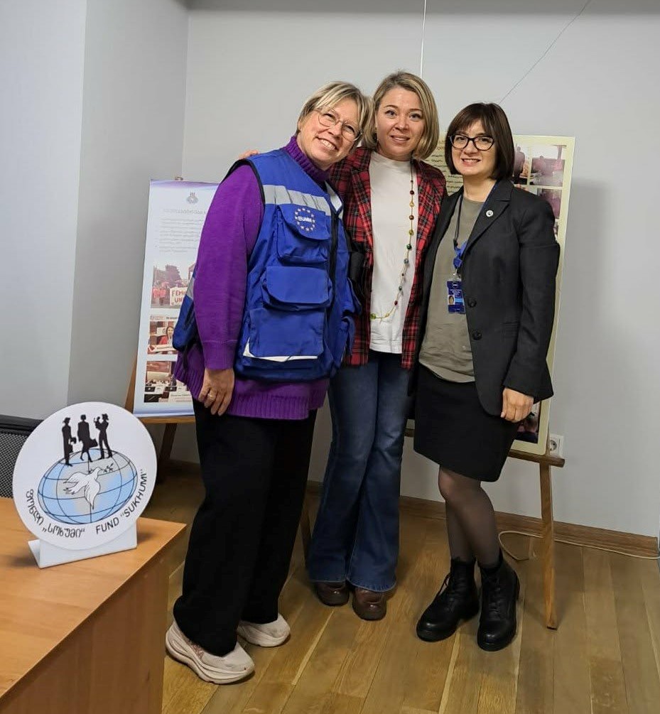 A meeting was held at the Tbilisi office of Women Fund “Sukhumi” with representatives of the EUMM Field Office Mtskheta, Ms. Nina Stubb and Ms. Nadezhda Drumeva. The guests were interested in the key findings of our new monitoring report “Why Do Women Leave? The Gender Dimension of Women’s Migration Drivers Through the Lens of Rights, Social Factors, and Intersectional Vulnerability”, available at: