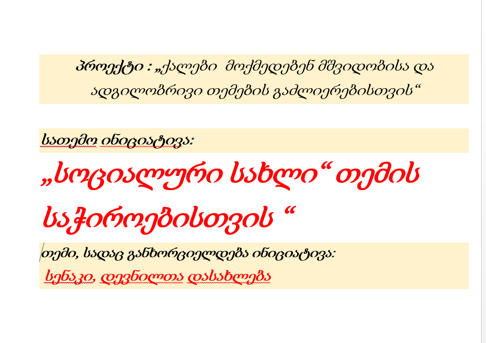 „სოციალური სახლი თემის საჭიროებისთვის“ - სენაკის თვითდახმარების ჯგუფის ინიციატივა
