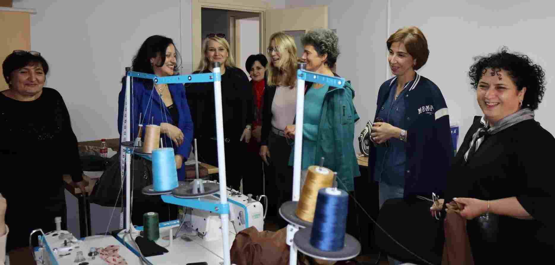 Гости познакомились с деятельностью Дневных центров в Кутаиси и Сенаки, пообщались с участницами курсов по лепке из полимерной глины и кройке и шитью, похвалили женщин за их старательность и красивые изделия.