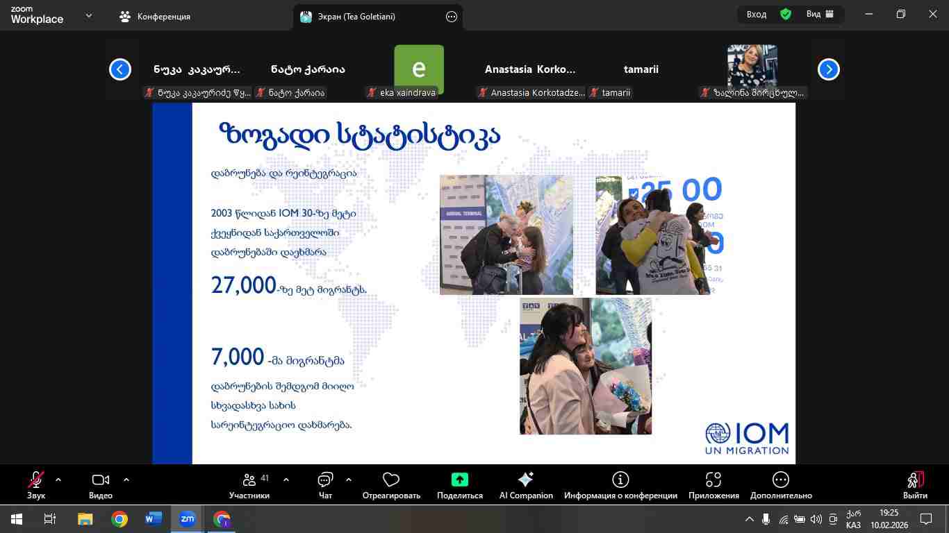 В первой части Натия Ахалая, представитель Кутаисского отдела Международной организации по миграции (IOM), рассказала о легальной и нелегальной миграции, статистике, индивидуальных услугах по возвращении в Грузию, поддержке вернувшихся мигрантов, грантовых проектах…