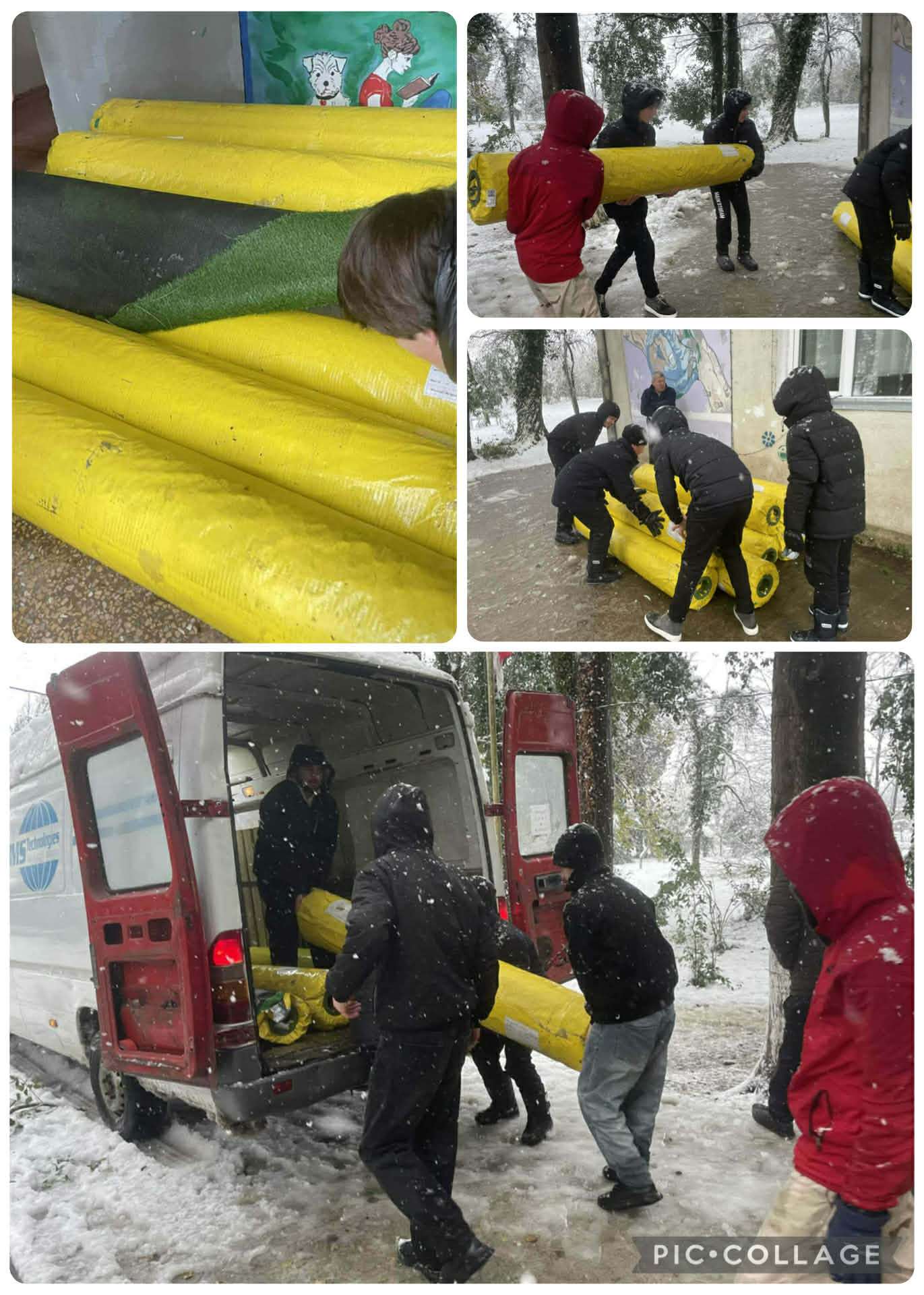 New green surfaces will soon appear on the school playground in the IDP community of Kopitnari. The surfaces were purchased, but were not installed due to bad weather.