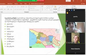 On the same day, a similar meeting with a youth initiative group was held in school # 2 of the village Lia (Tsalenjikha municipality). The children also wrote essays on the topic of Abkhazia and sent messages to Abkhazian peers. Three members of this group shared the knowledge gained at the common training of the initiative groups with friends.
