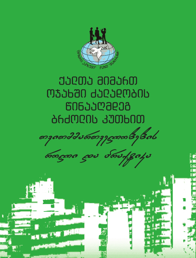 „სამართალდამცავი ორგანოების როლი და არსებული პრაქტიკა - ქალთა მიმართ და ოჯახში ძალადობის წინააღმდეგ განხორციელებული საკანონმდებლო ცვლილებების პრაქტიკაში დანერგვის მონიტორინგი“ - ასე ჰქვია პუბლიკაციას, რომელიც გამოიცა ფონდ „სოხუმში“. მასში გამოყენებულია შსს-ს ადგილობრივ სტრუქტურებთან ჩატარებული მცირე მასშტაბის მონიტორინგის მასალები. სამაგიდე კვლევის ფარგლებში გაანალიზდა არსებული საკანონმდებლო ჩარჩო.